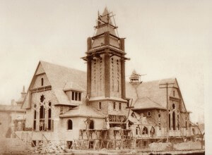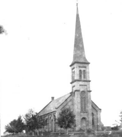 Meanwhile the little group of families at the Presbyterian Church – John and Almira Johnson, Chauncey (C.J.) and Caroline Pettibone, Hiram Pettibone, George and Anna Wall – were joined by John and Elinor Jones and Mrs. Emily Best on July 14, 1850 as the charter members of the congregation. They received aid from others – Dr. C.G. and Harriet McCulloch, Decatur Vandercook and Lemuel Berry, among others – who helped them begin building a frame church on the southeast side of Cook Street opposite what is now the John Roche / Columbia County Law Enforcement building.